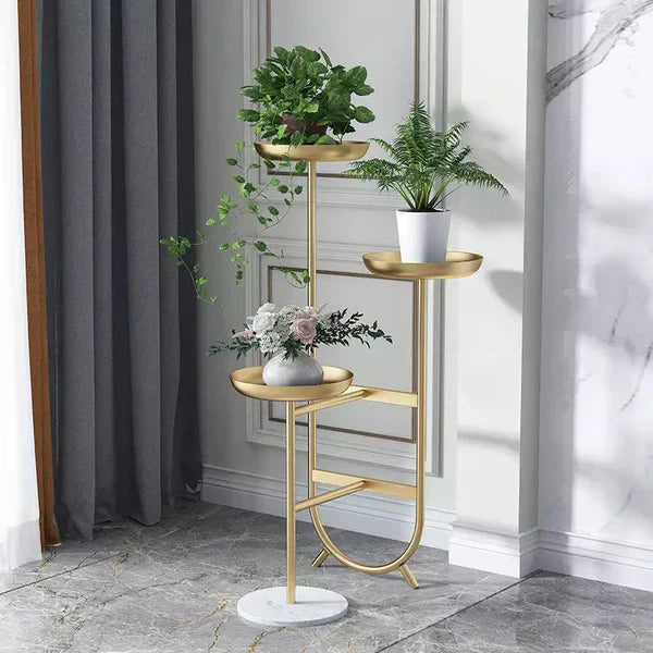 3-Tier Tall Metal Plant Stand Chic Unique Shaped Planter in Gold | MSPS-0103