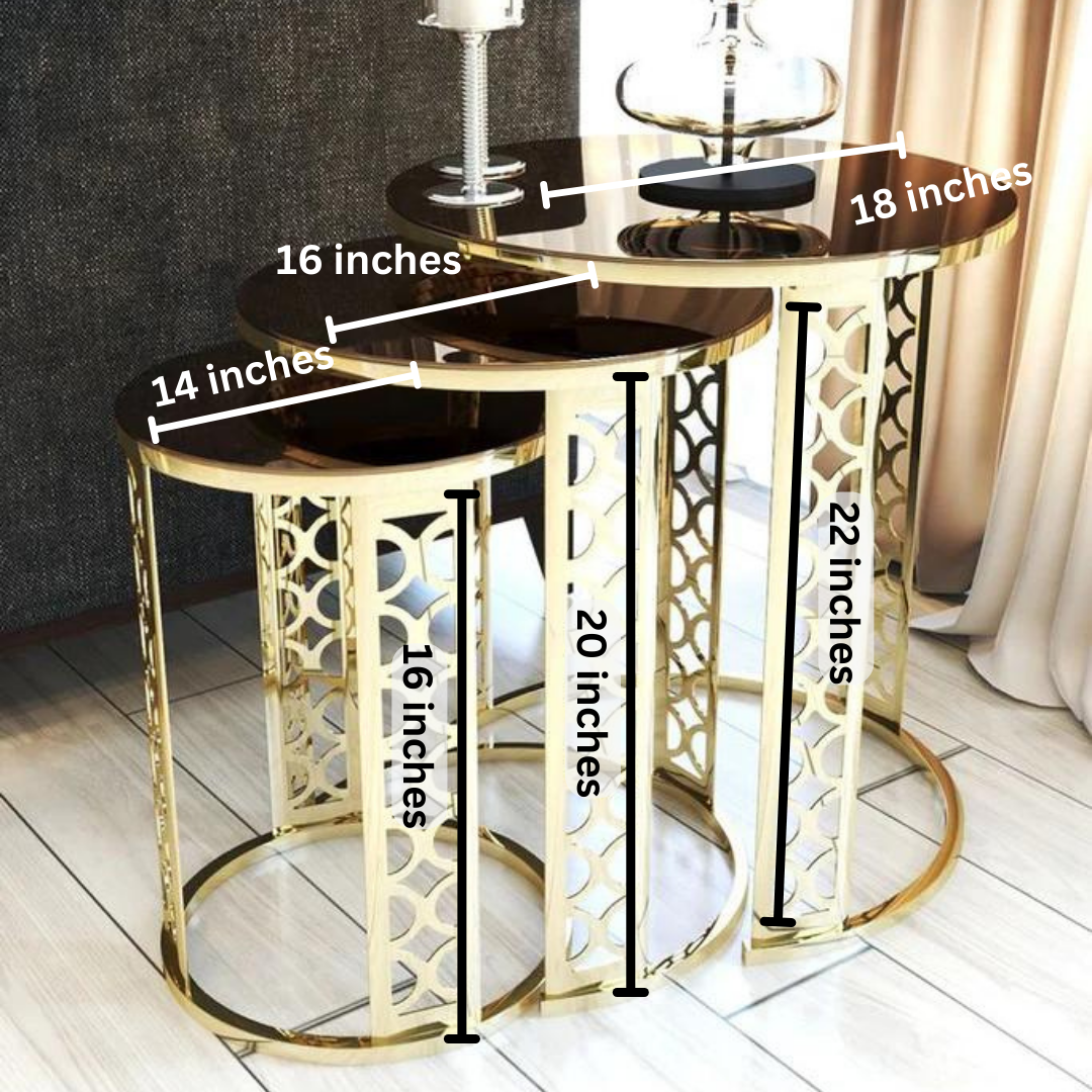- Set includes three nesting tables: Large, Medium, and Small.