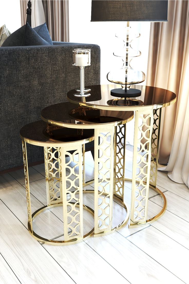 - Set includes three coffee tables with a zigon design.