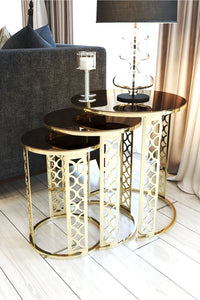 Bronze Mirror Gold Plated Zigon Coffee Table 3-Piece Set: