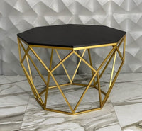 Clean and carving look of this beautiful Diamond coffee table comprises a gold shaded iron base with mdf top. This elegant choice will match your style and budget. Its modern design and unique combination of materials making it a trendy and perfect addition to your living room.