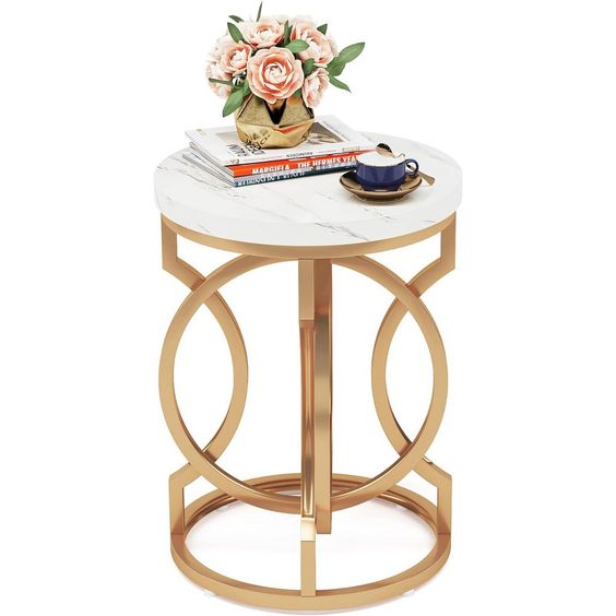 Elevate Your Space with Tribesigns’ modern round end table, a piece designed to add a touch of elegance and sophistication to any living room. With its mdf top and gold ring-shaped frame, this end table combines contemporary aesthetics with practical functionality. Its unique appearance and minimalist design make it a standout addition to your home decor.