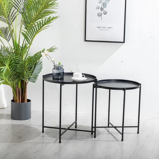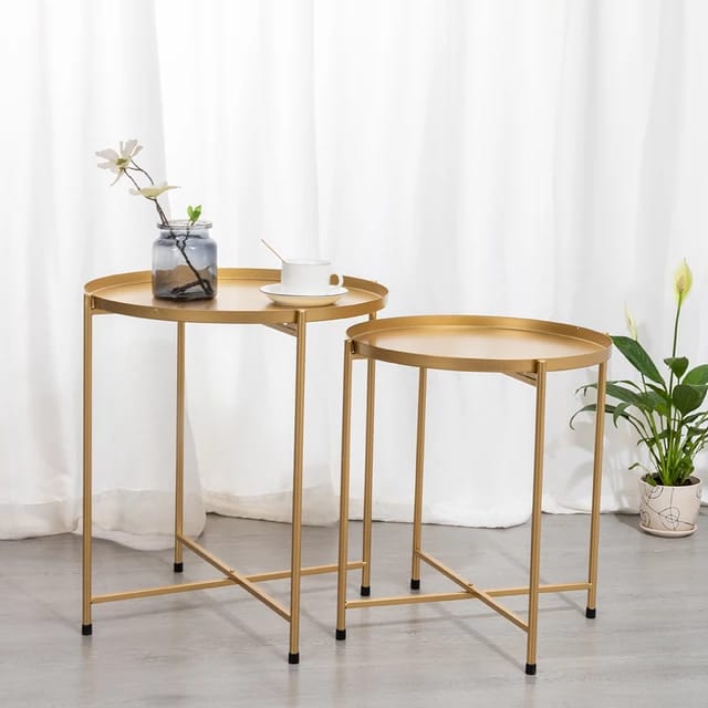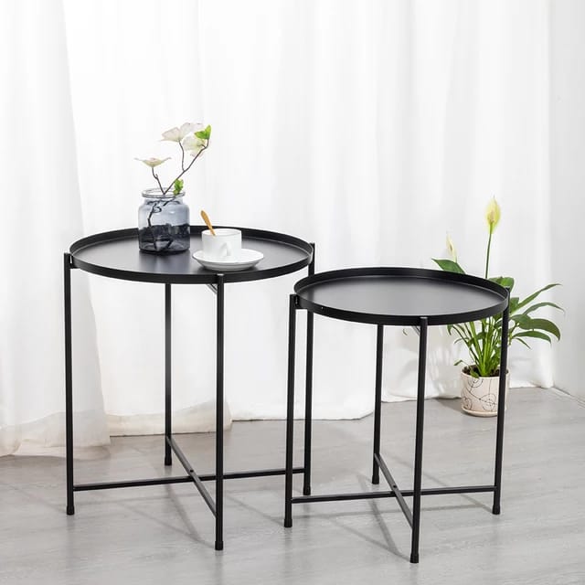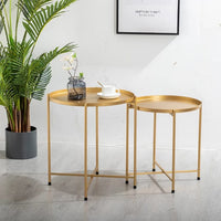 Round Coffee Table, Metal Sofa Table, Serving Table, Coffee Table (Pack of 2) | 0285