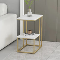 The Basset Side Table is the stylish piece of interest that will brighten up your living room. The sleek metal frame with clean lines brings a contemporary feel, decked with two white top shelves that provide ample storage for little bits and bobs.