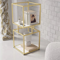 The geometric magnificence metal display bookshelf is sure to make a statement in the home. The angled supports and offset shelves are eye-catching and sturdy, made of high-quality materials for completing this unit. This shelf is ideal for the living area, workplace, or even home library with a corner design. Stable and long-lasting, it is made of corrosion-resistant metal; it may be positioned in the corner of the room. The hallway has two separate sections of varying sizes, allowing for plen.